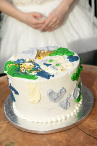 ➎ゲストの皆さまにペイントしていただき完成した、世界にひとつだけのオリジナルウェディングケーキ