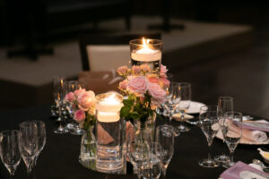 披露宴会場には、おふたりのセンスが光る「ピンク×ブラック」の世界観が広がります。