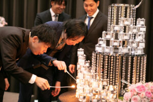中盤には、憧れのホテルウェディングを思わせるキャンドル演出を取り入れ、
