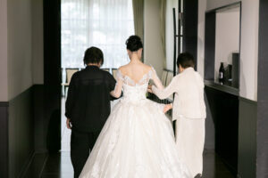 新婦様が纏ったのは、刺繍が美しく上質で柔らかなウェディングドレス。