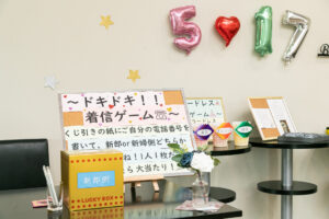 くじ引きに自分の電話番号を書いて、新郎側・新婦側どちらかのBOXへ。