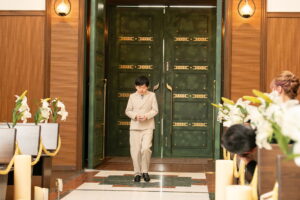 花びらをまきながら新郎新婦様の入場を華やかに演出するフラワーガール🌸